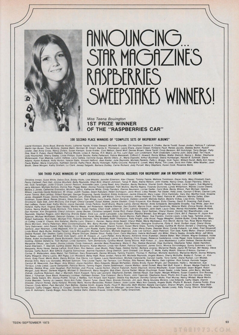 New Year's 2015 update! Four years after I first posted star1973.com, I figured it was time to give you Star fans a whole 'nother dose of fun. As a token of my appreciation for everyone who's taken the time to drop a line or link to the site, I've added some rarely glimpsed Star magazine ads. And, just for kicks, I went ahead and tracked down the young lady who won the Raspberries Rollswagen magazine ads contest, too!